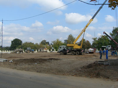 ”А строительство как-то кроме шума мешает?” – поинтересовалась я. ”Ой, и не говорите! Перекапывают всё, трубы какие-то кладут, ямы одни и грязно. Хорошо, что у нас пока и свет, и вода есть! Вот здесь дня два назад пройти было вообще нельзя”, – и указывают на какое-то место в районе ограды. Этих мнений нам вполне хватило – они полностью совпадали с нашими. Позитива пока вообще никакого. Всё, возвращаемся, у меня сердце кровью обливается – как и когда я здесь буду жить?… Новое здание школы: «и на вашей улице будет праздник…» (Наверх)
